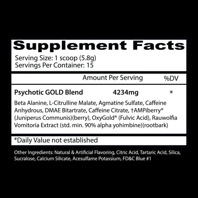 Psychotic GOLD está formulado para aquellos adictos a los estimulantes que quieren llevar sus entrenamientos al siguiente nivel. Cargado con dosis clínicas de los mejores ingredientes de la industria, como citrulina y sulfato de agmatina para una mayor vascularización, beta-alanina para la resistenc...
